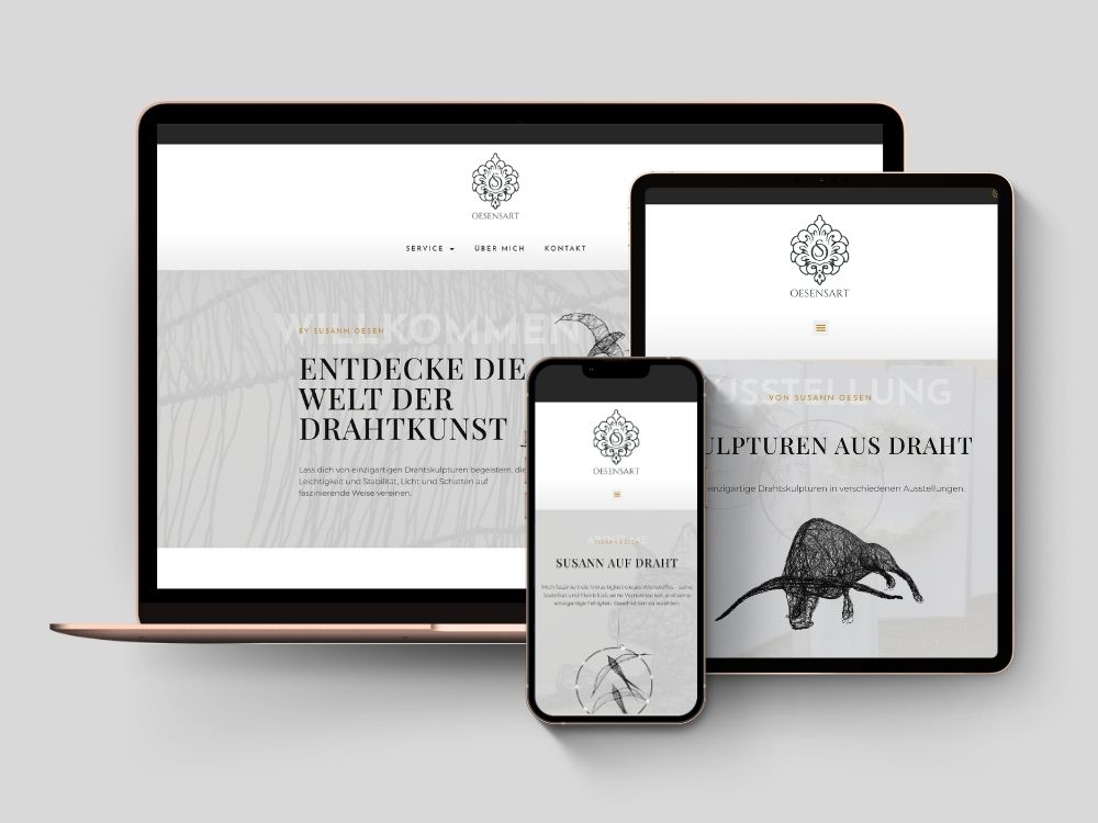 Susann brauchte eine Bühne für ihre feinen Drahtskulpturen und ihre Workshops. Ihr bestehendes Logo wurde für Web und Print optimiert.